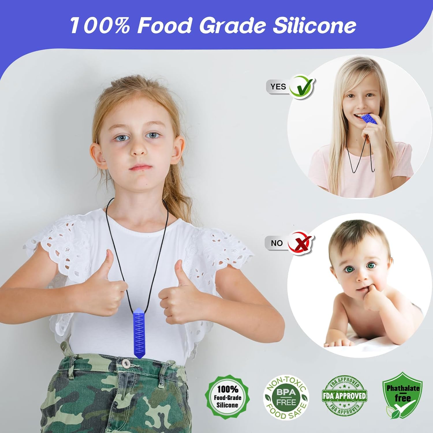 Food-Grade Silicone Material: Made from 100% food-grade silicone, these chewable pendants are safe, non-toxic, and BPA-free, ensuring peace of mind for parents and caregivers.