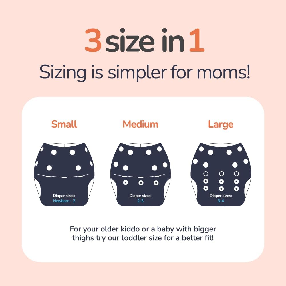 Cute little waterproof pants for an infant. I got the space design. I like the navy color. I have a pool, so these pants will be good for when the baby is a few months old. I like the snaps; makes it easier to put on. Does the job.Adjustable Swim Diapers Size 2 3 4, Reusable Swim Diaper for New Born, Infant, Baby, Toddlers under 20 Lbs, Anti Solids Leak & Water Resistant Swimming Diapers (Space, Adjustable)