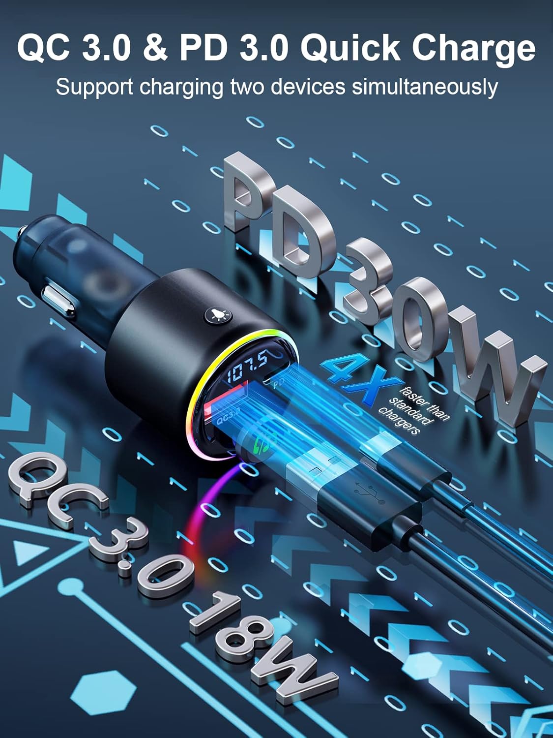 Experience the ultimate in-car connectivity with our cutting-edge Bluetooth adapter. Equipped with PD 30W & QC 3.0 18W fast charging capabilities and advanced safety features, it ensures swift and secure charging on the move. Seamlessly stream audio with Bluetooth 5.3 technology, enjoy crystal-clear hands-free calls, and effortless voice navigation. Its sleek design, blending aluminum alloy strength with transparent ABS aesthetics, exudes modern elegance. Easy frequency adjustment, vibrant LED backlighting, and a user-friendly interface make this adapter a must-have for a stylish and safe driving experience.