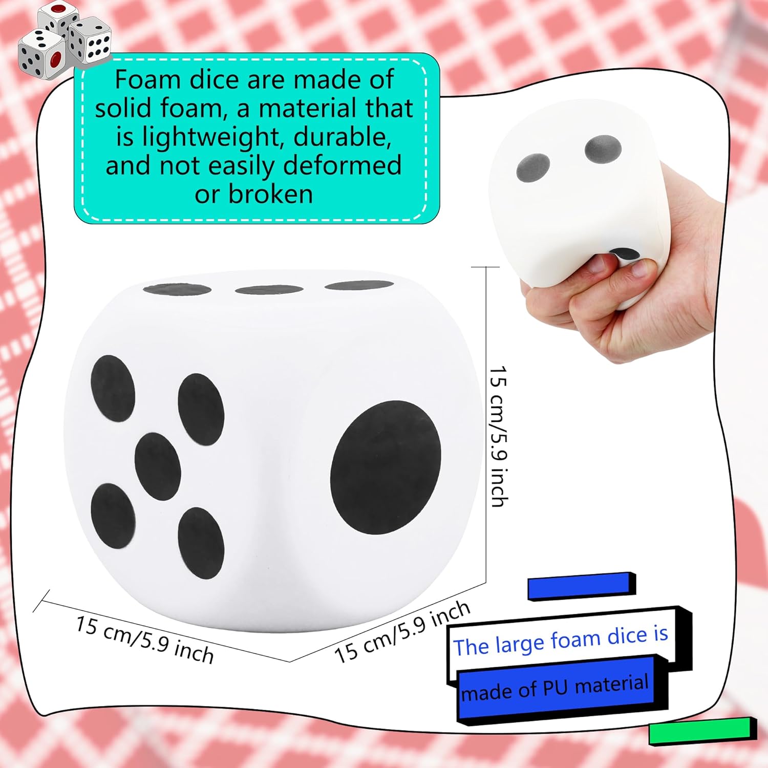 Quality material: this giant foam dice are made from solid foam, a material that’s lightweight yet durable and won’t easily deform or break; with excellent shock-absorbing properties and compressive strength, our dice can handle it easily whether you’re throwing it around in a game or carrying it around frequently