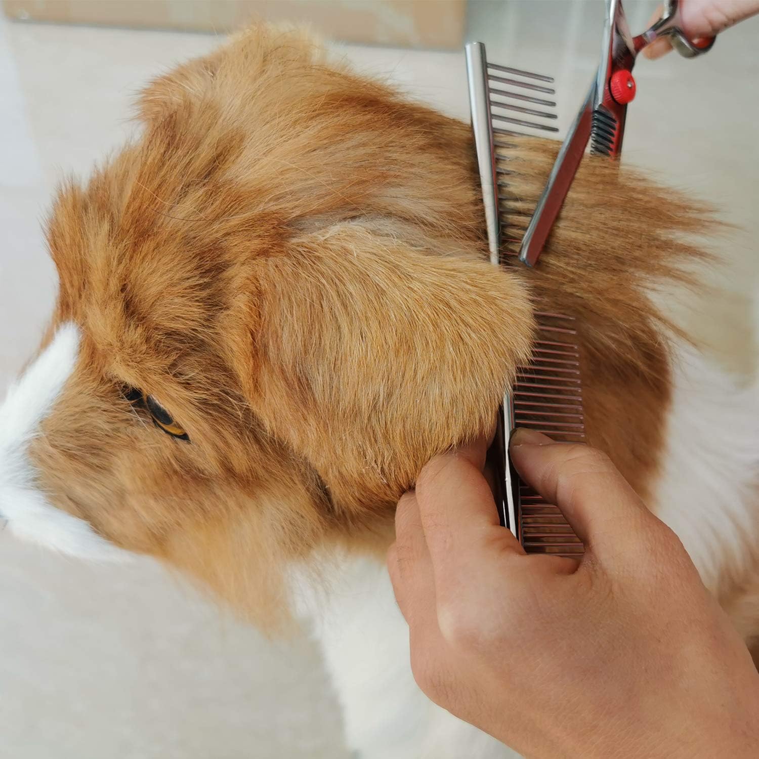 Elfirly Dog Grooming Scissors Set with Safety Round Tip (2 Pack – Curved Scissors Thinning Shears for Grooming) Pet Grooming Shears with Grooming Comb for Dogs and Cats