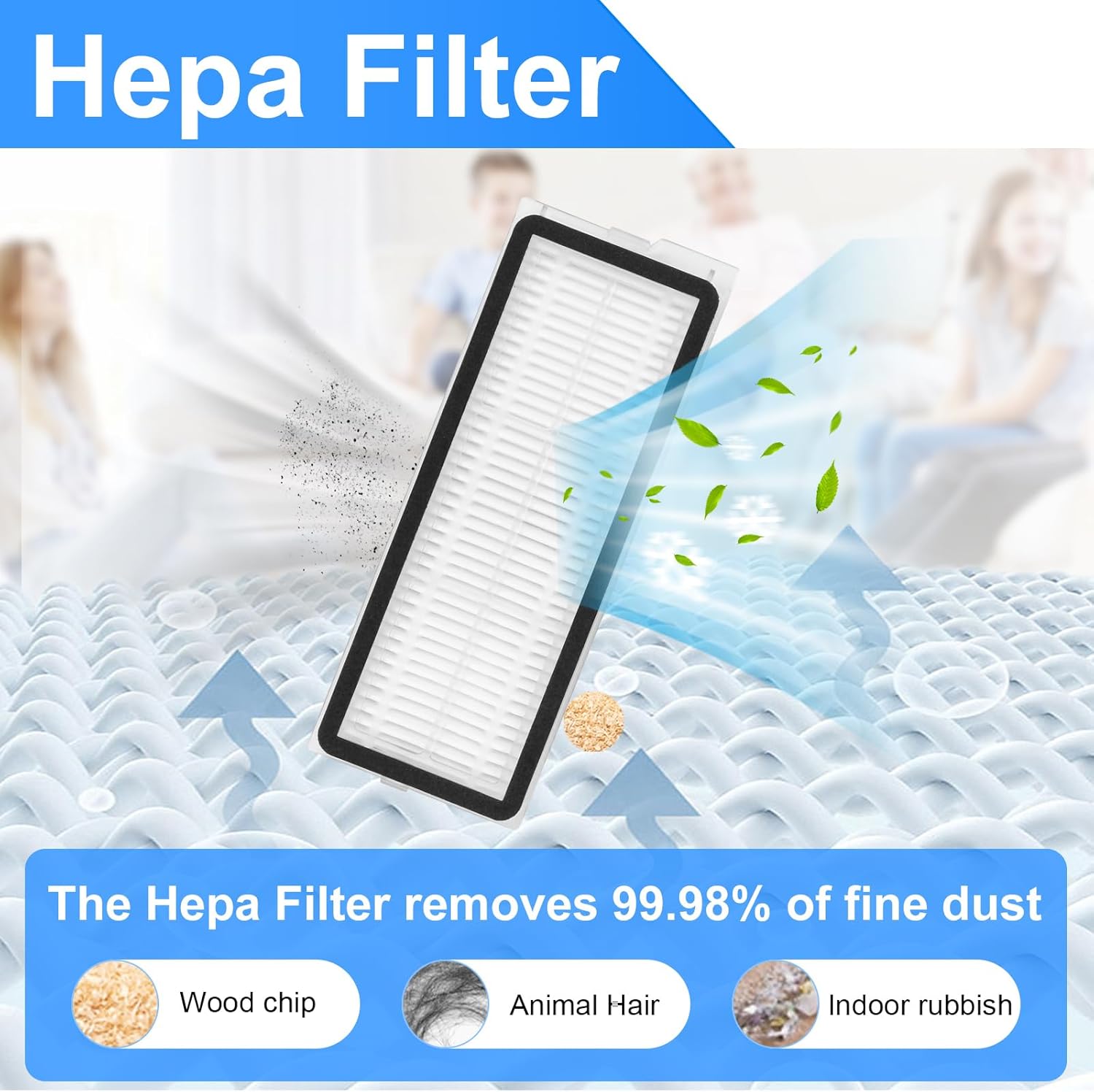 【Product Quality】: Rolling brush, side brush, mop pad made of high quality materials, durable and practical. Fine workmanship, very compatible with your machine.The filter element can filter dust and exhaust gas and protect the motor of the vacuum cleaner. The dust bag can collect and load garbage, dust and other debris generated during the cleaning process of the robot.