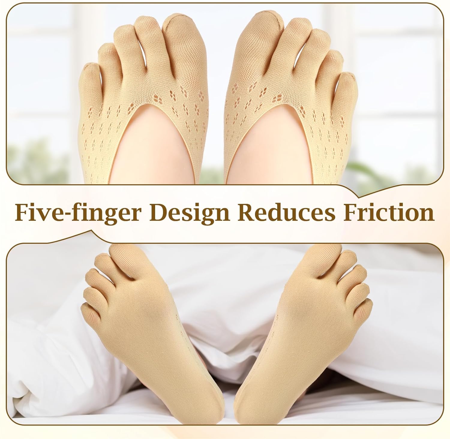 Function: Our toe separator socks are designed with all five fingers to properly stretch the toes and prevent swelling. Toe socks can relieve stress, improve blood circulation, and relax your tired feet.