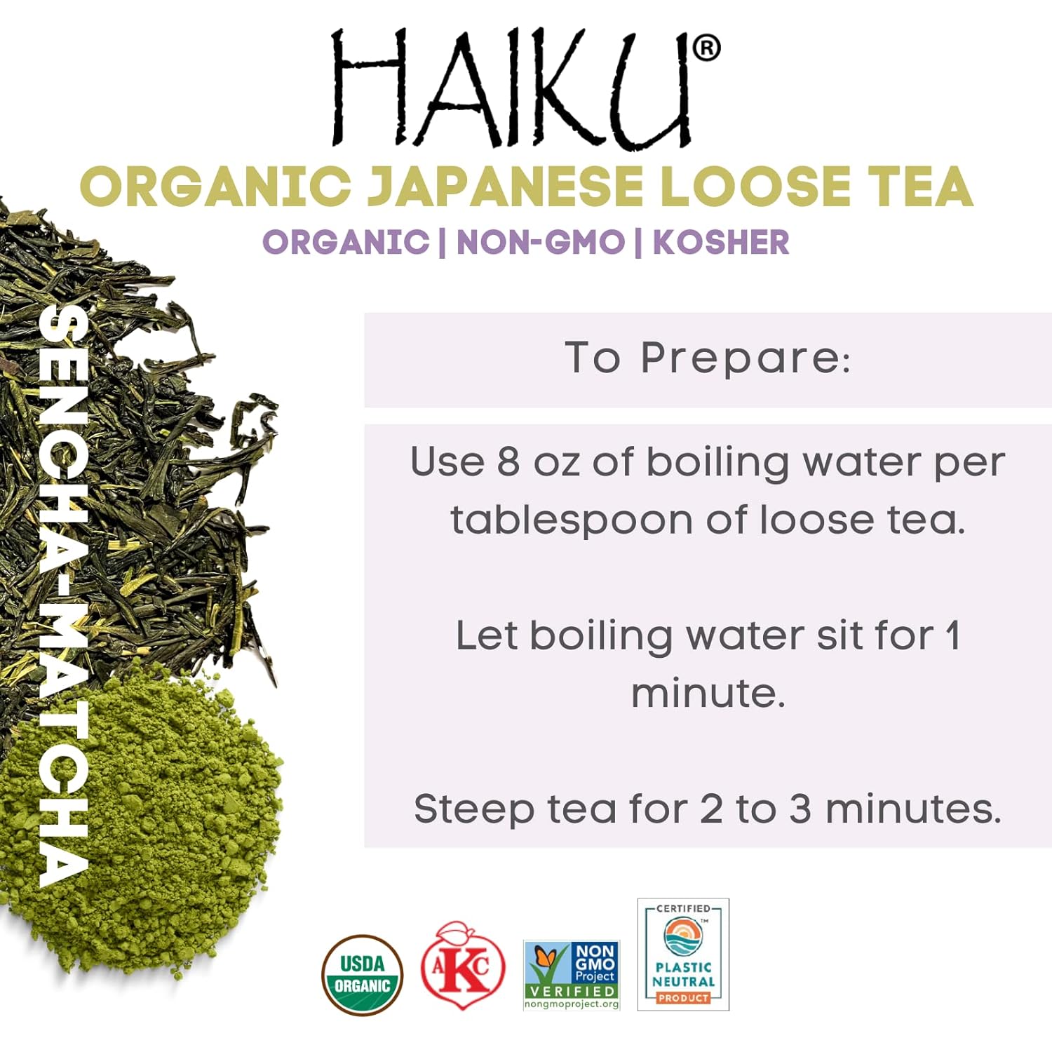 Haiku Organic Japanese Sencha Matcha Green Tea, Premium Loose Leaf Tea, USDA Organic, Kosher, Non-GMO, 3 oz Bag