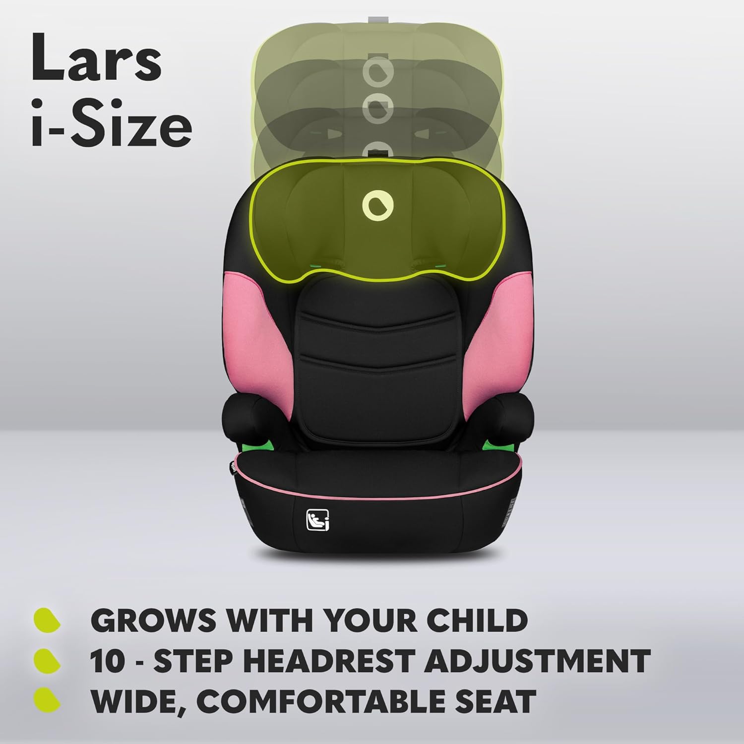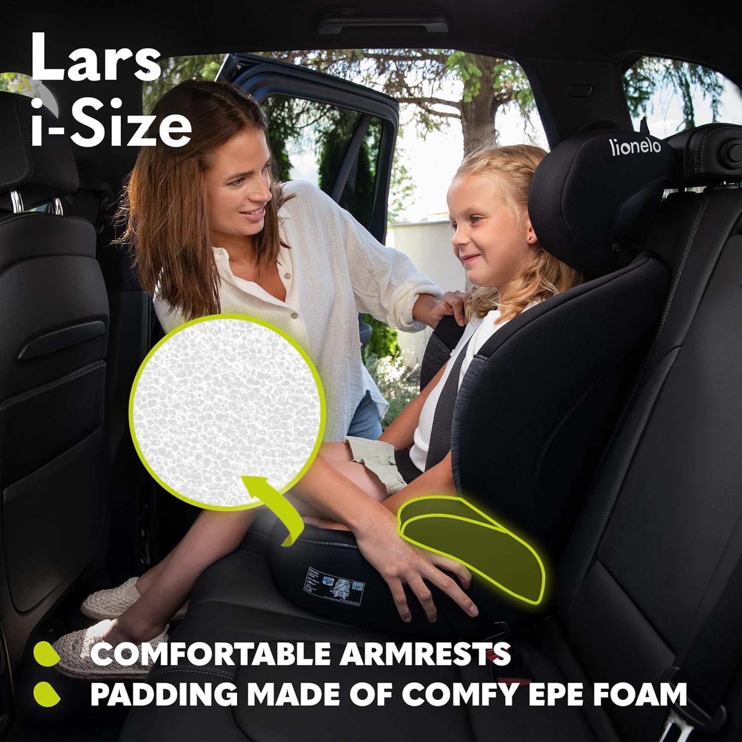 6 reviews for Lionelo Lars i-Size Adaptive Child Car Seat, Universal Fit, for Kids 100-150cm/4-12 Years with Wide & Comfortable Seat, One-Hand 10-Step Headrest Adjustment, Latest R129 Standard, Ergonomic Armrests