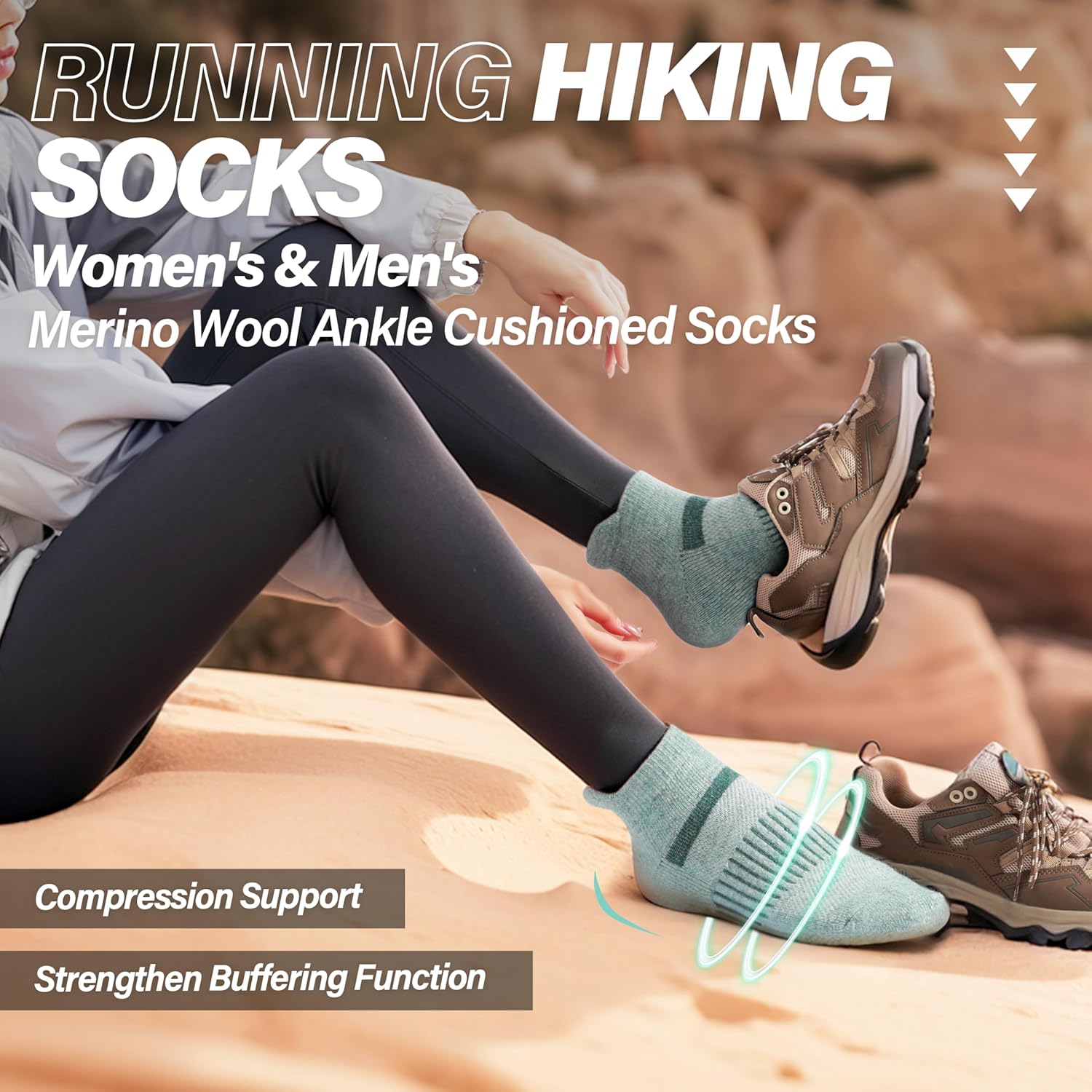 MOSEY KOSY 6 Pairs Merino Wool Women Men Unisex Ankle Running Walking Hiking Work Thermal Winter Warm Socks Compression Support Breathable Thick Cushion Socks
