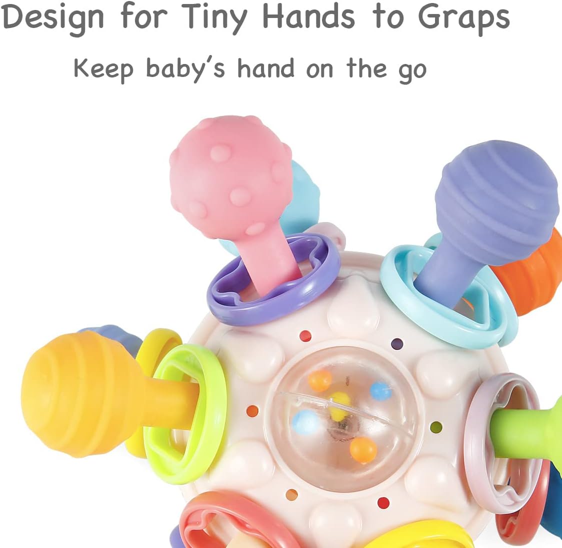 【100% SAFE & Prevent Scratches】Our developmental toy for baby is made with certified approved premium 100% Food Grade Silicone that’s BPA, PVC, Latex, Latex, Metals, Phthalate, Toxic and Rust free. Our baby teether toy is great for keeping babies from scratching their skin and avoiding accidental eye pokes.