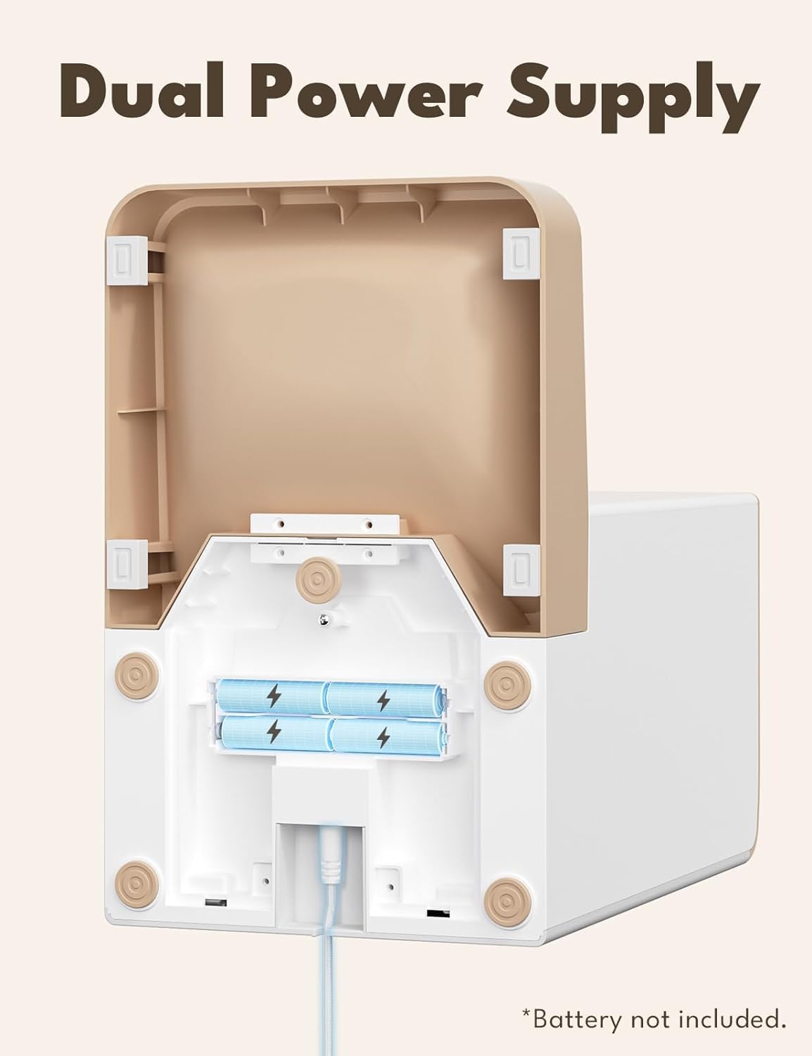 【Dual Power Supply】Never miss a feeding. Our automatic cat food dispenser can be powered by a bite-proof power cable and optional battery backup. With a built-in memory system, the cat food dispenser can continue with your feeding plan even without power or internet. Plus, with the option to use AA batteries(not included) for emergency, you’ll never have to worry about missing a feeding again.