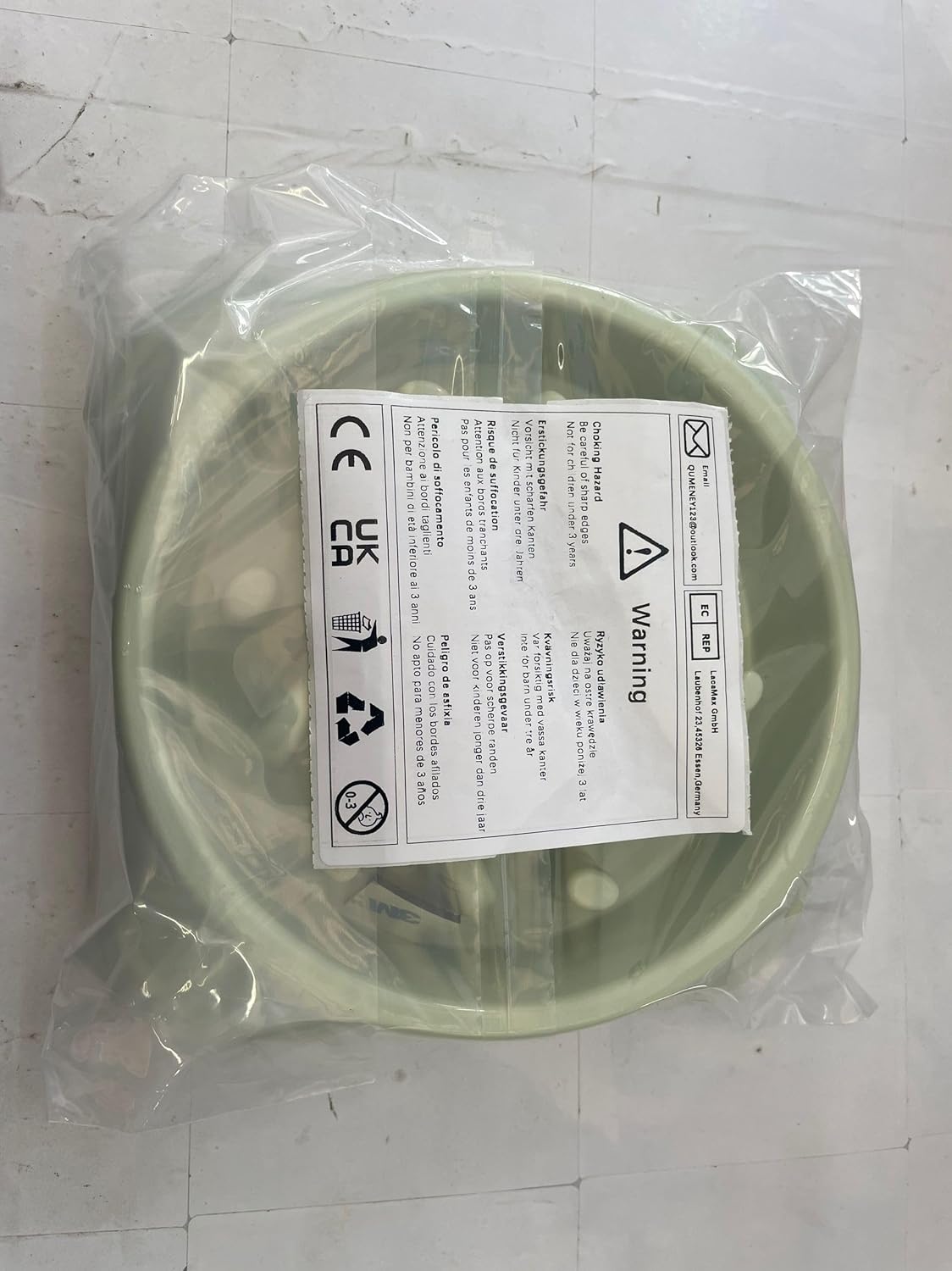 Bowl arrived with a gaping hole in the middle. Whereas first picture in the ad clearly shows a middle insert. Iâve had to keep it as threw all the packaging away. Not going to be that much of a slow feeder when my dog will just chomp the middle of it