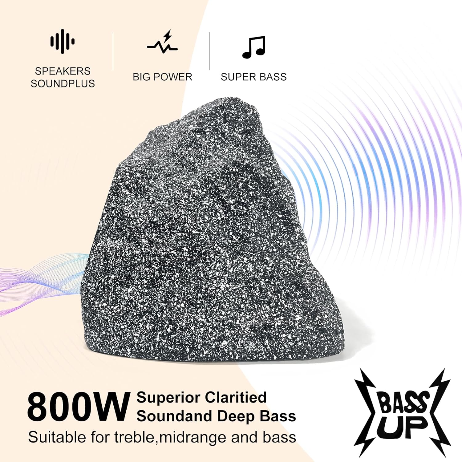 IPX6 Super Waterproof Weather Resistant: The rock speakers are made through a five-layer process designed for year-round use, so you don’t have to worry about the speakers changing color or changing the sound quality. The outdoor rock speakers suitable for any environment, decoration, or terrain