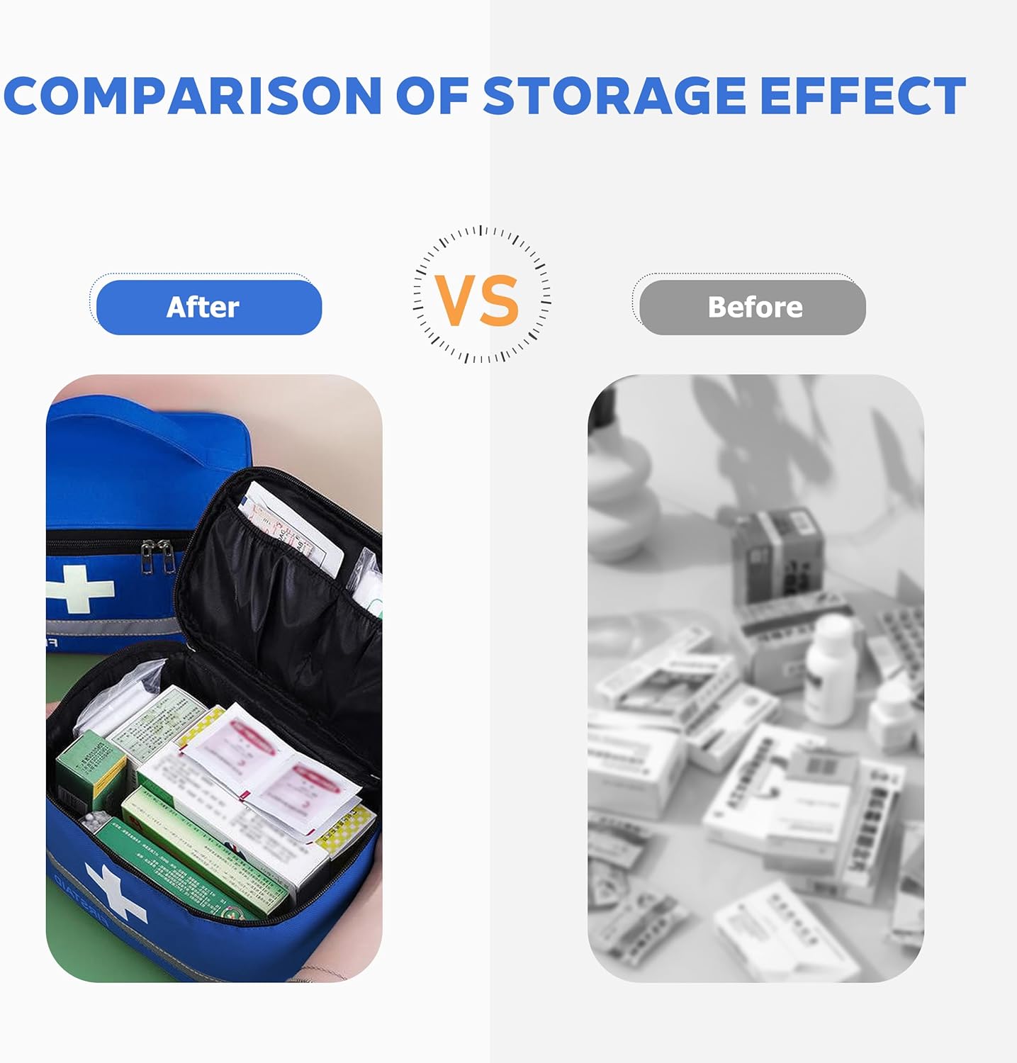 【Premium Material】This first aid kit bags is crafted from durable Oxford cloth material that is lightweight, waterproof, tear-resistant and dust-proof, ensuring long-lasting use