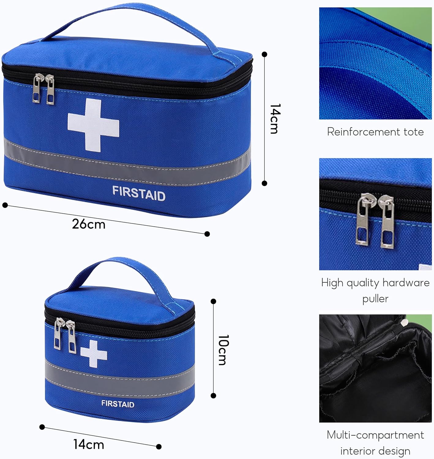 – A set of 2 pieces, the large first aid bag is suitable for home and long-distance travel, the small first aid bag can be filled with medicines and tools needed for daily work